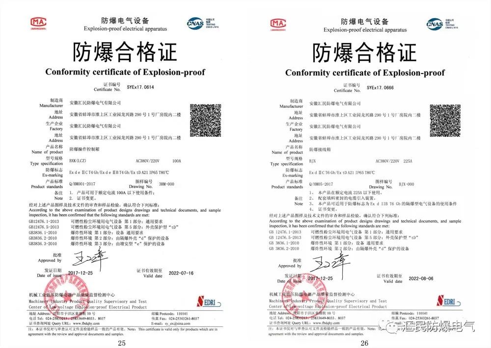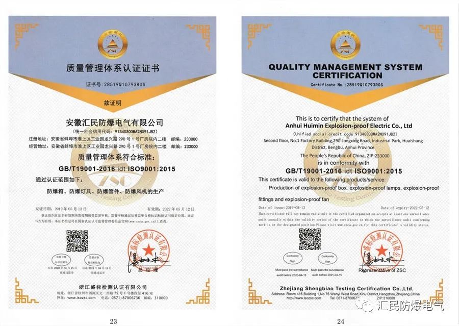 防爆合格證,3C強制產(chǎn)品認證證書,ISO9001質(zhì)量管理體系認證證書。